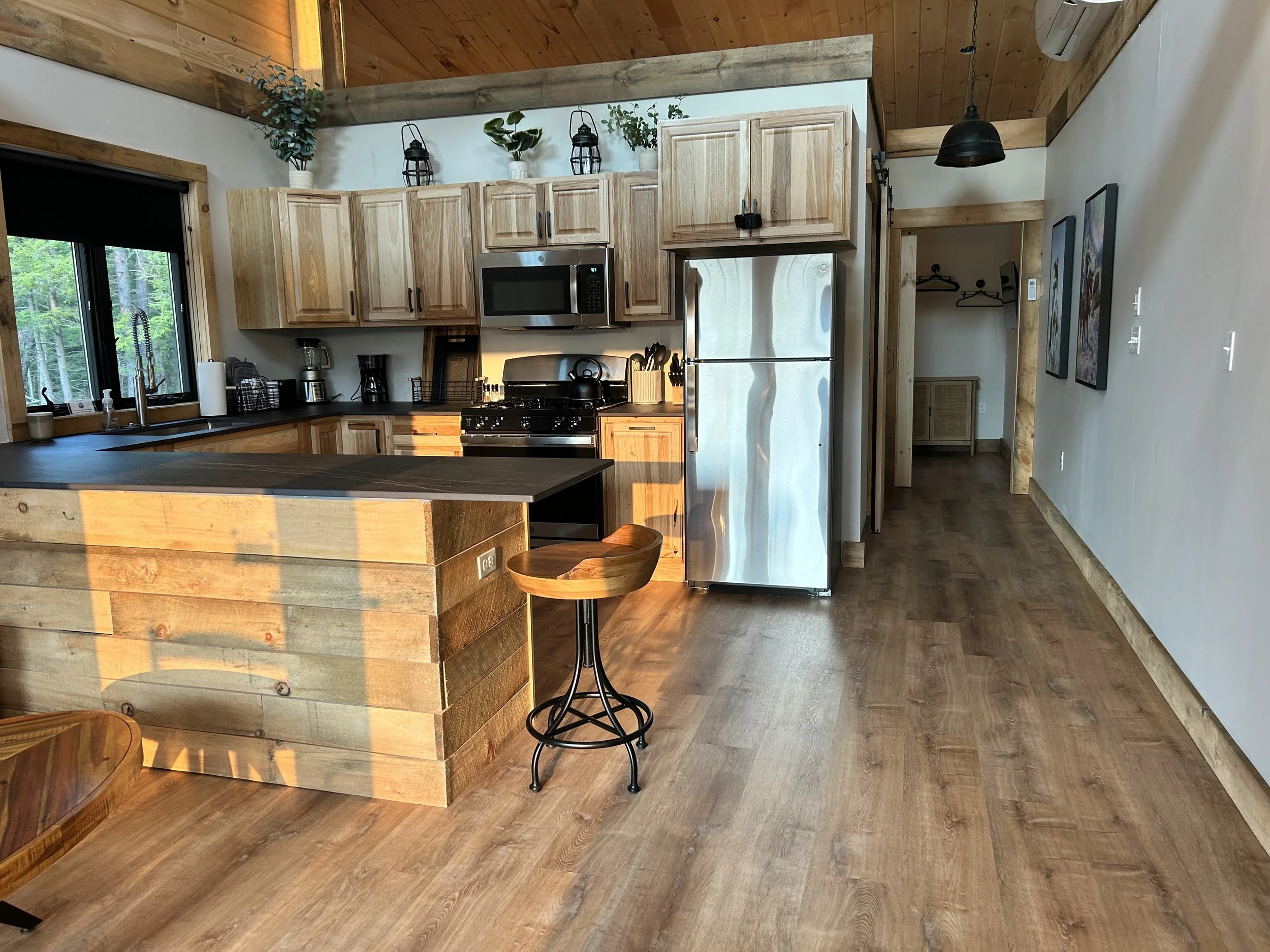 Revival Ludlow’s Main House is perfect for family gatherings or for sharing with another family. The large kitchen features a gas cooktop, electric oven, and dishwasher. The main living room offers a wood-burning fireplace and ample space to relax. An upstairs bonus room with a queen Murphy bed easily converts the space into a four-bedroom home — and a fifth bedroom is available in the adjoining cottage connected by a covered catwalk.